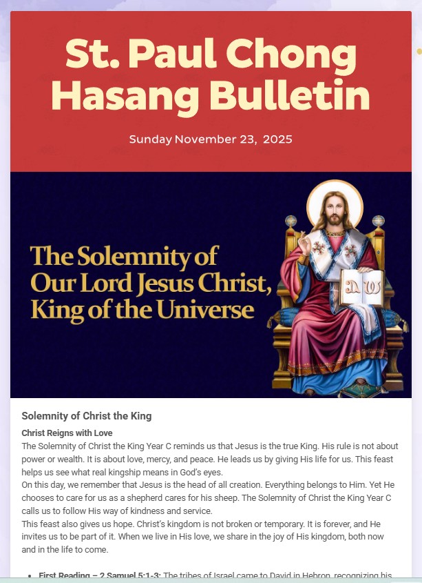 Sunday Bulletin Nobember 23rd, 2025