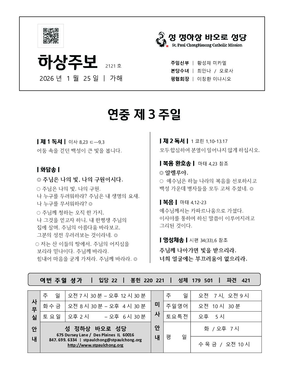 StChongHaSang Jubo 2026년 1월25일 주보입니다